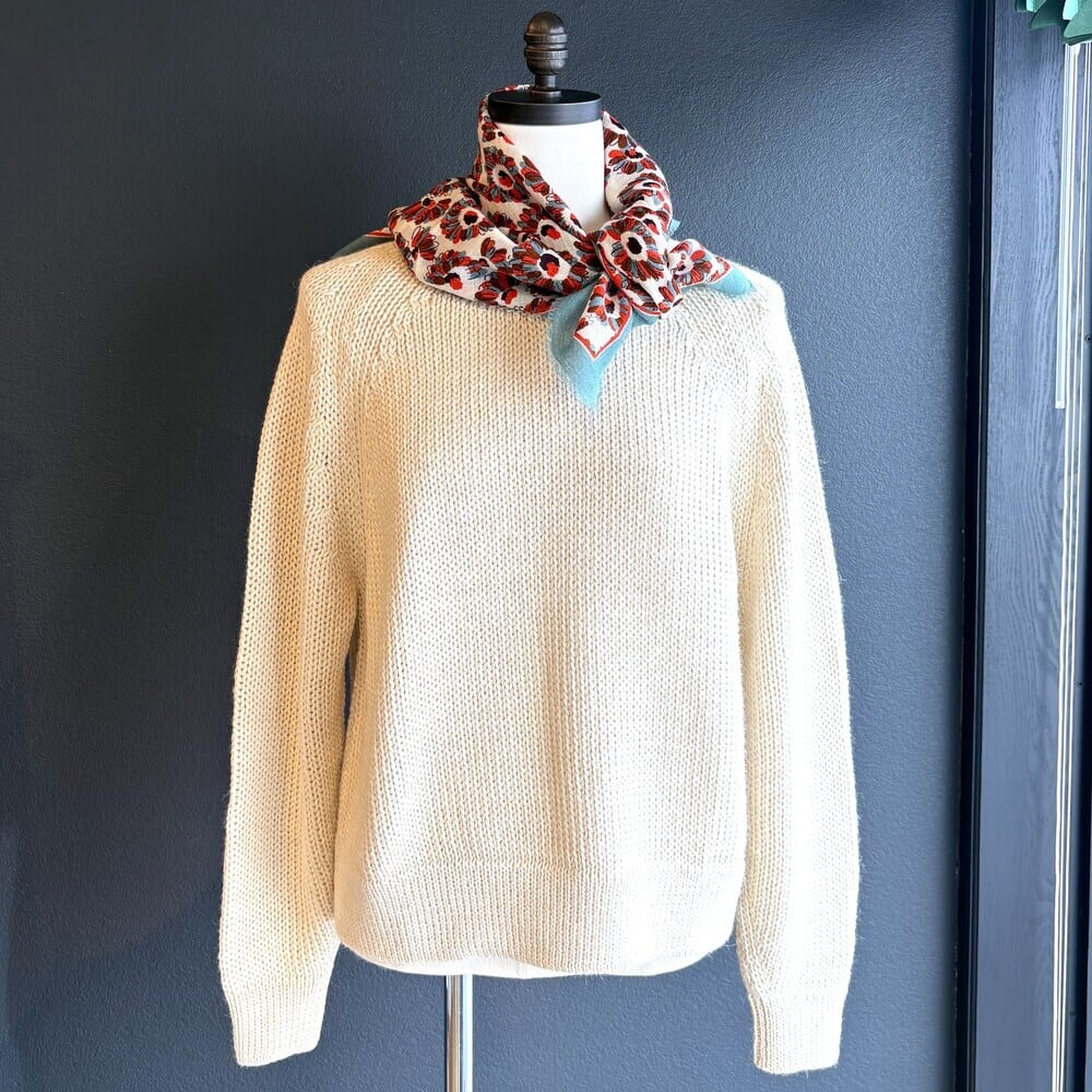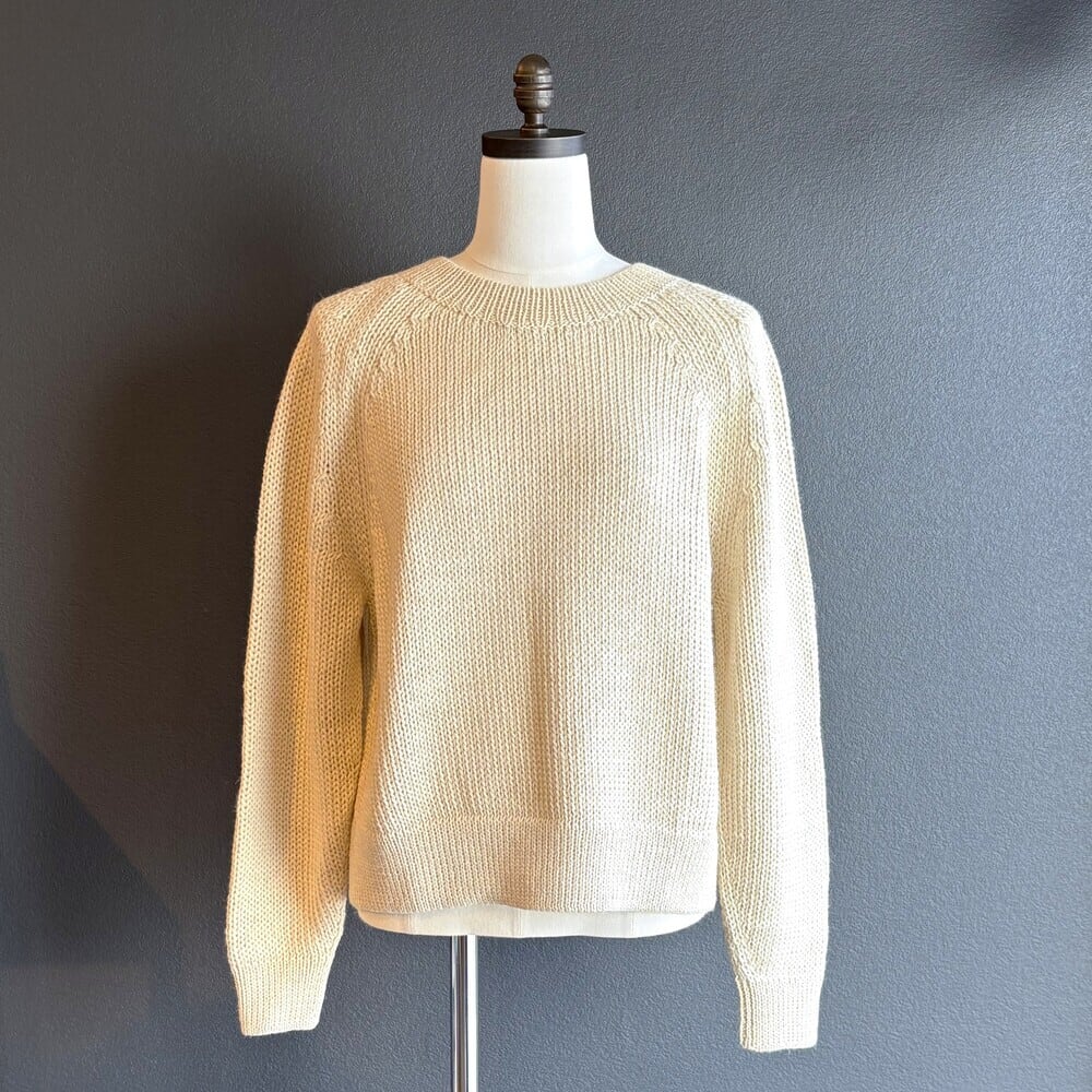 ざっくりとした編目のシンプルなラグランニット。身幅もゆったりとして着丈とのバランスも良いので、パンツやスカートどちらでも合わせやすいデザインになっています。アルパカ100%でふんわりとした編み方なのでとても暖かく、肌触りも柔らかいのでストレスなく着て頂けます。