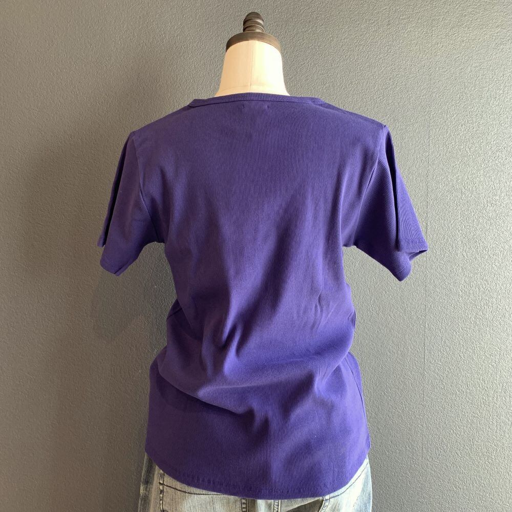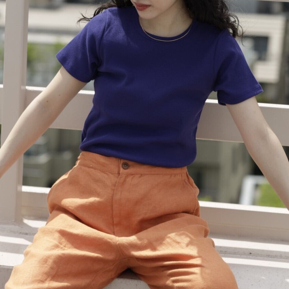 コットン製リブのクルーネック半袖T。適度なストレッチ感があり快適な着心地です。